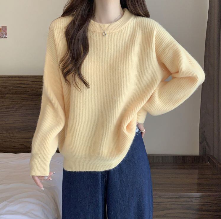 秋 レディース セーター 7248 小柄体型 スタンダード プルオーバー ラウンドカラー レギュラー ショートモデル ゆったり長袖 セーター レディース ミニマル トップス 送料無料