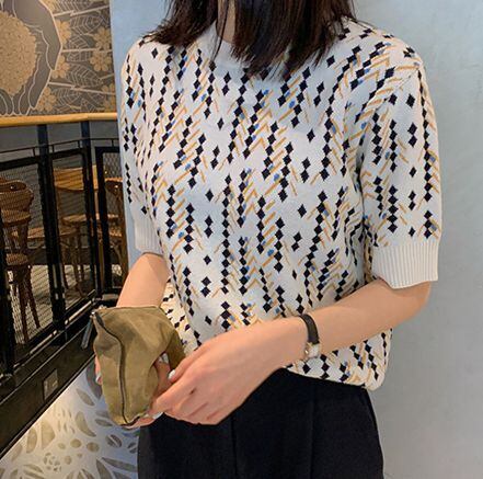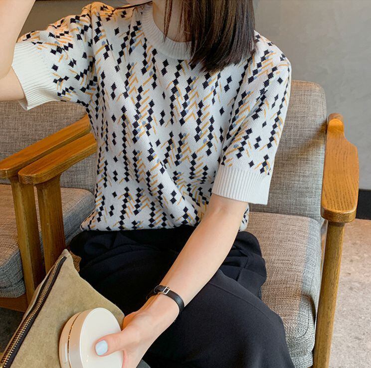 トップス ニットソー ミディアム丈 20192 半袖 ラウンドネック ワイド リブ ポリエステル 大人可愛い カジュアル おしゃれ かっこいい レトロ 大人可愛い 大人女子 こなれ感 ラフ ルーズ チェック柄 春 夏 2020 10代 20代 30代 レディース デート お出かけ 女子会 休日 旅行 ガーデン 着回し 普段使い 韓国 ファッション 楽ちん 流行 インスタ映え サイズ S M L XL 2XL 3XL 色展開 パープル イエロー 送料無料
