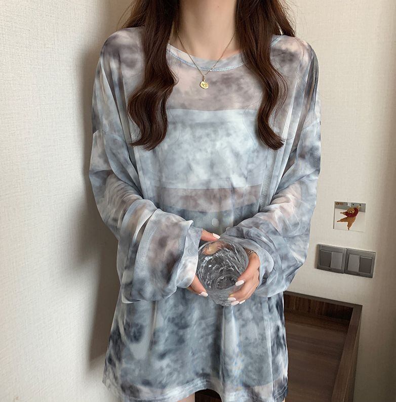 トップス Tシャツ ミディアム丈 袖あり 20209 長袖 ラウンドネック 襟付き ストレート 薄手 カジュアル おしゃれ かっこいい こなれ感 ラフ メンズライク ボーイッシュ スポーティー ルーズ 個性的 クール 柄 タイダイ 夏 秋 2021 10代 20代 レディース 学生 デート お出かけ 休日 運動 アウトドア イベント 着回し 普段使い オルチャン ファッション 楽ちん 体系カバー 新作 インスタ映え サイズ S M L XL カラバリ 送料無料