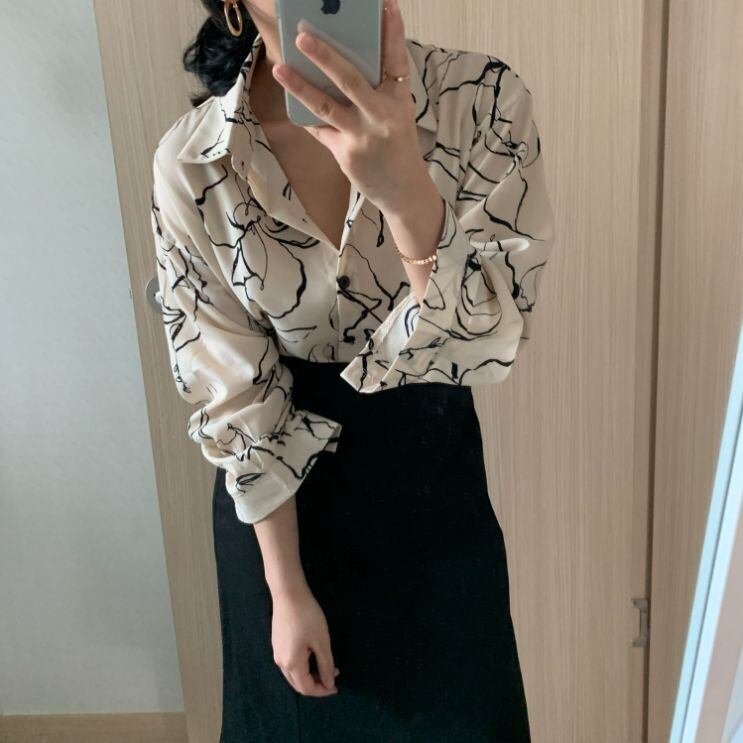 トップス シャツ ミディアム丈 袖あり 20214 長袖 襟付き POLO襟 ストレート 前開き 薄手 大人可愛い きれいめ 大人 上品 おしゃれ かっこいい レトロ 大人女子 ラフ ルーズ クール エレガント リーフ柄 春 秋 2020 20代 30代 40代 レディース デート お出かけ 女子会 休日 イベント 旅行 着回し 普段使い 韓国系 ファッション 楽ちん モテ インスタ映え フリーサイズ 色展開 ブラック アプリコット 送料無料