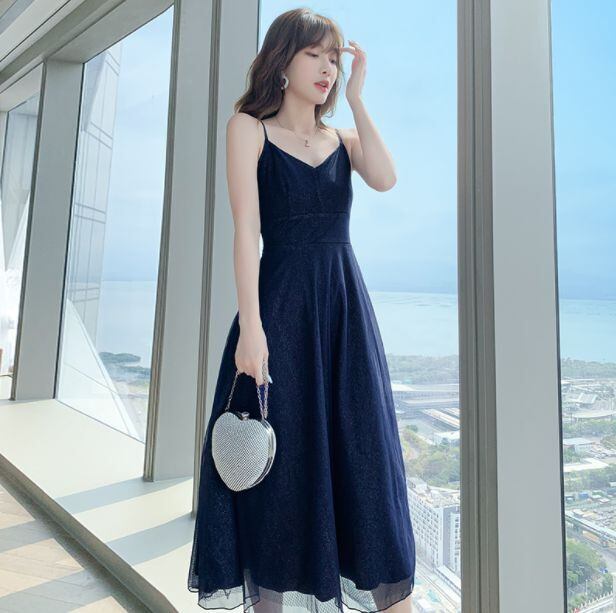 ワンピース ドレス 膝下 袖なし 5013 ノースリーブ Vネック 襟なし Aライン ハイウエスト 薄手 大人可愛い きれいめ 大人 上品 おしゃれ 大人可愛い 大人女子 クール セクシー エレガント スパンコール 春 夏 謝恩会 二次会 披露宴 2021 20代 30代 レディース パーティー イベント ホテル レストラン 韓国系 スタイル モテ 美脚 新作 インスタ映え サイズ S M L XL 2XL ナイトスカイブルー 送料無料