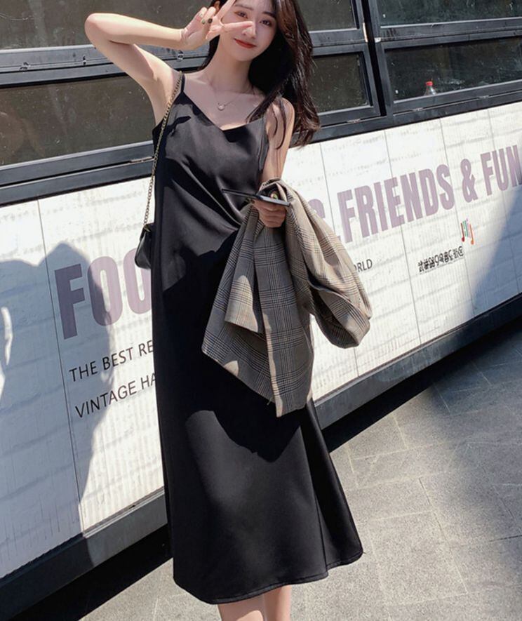 大人女子におすすめしたい、ロング丈のキャミソールワンピです。程よく抜け感があり、広がりすぎないすぎないシルエットが上品さを演出します。デートコーデにもピッタリです。