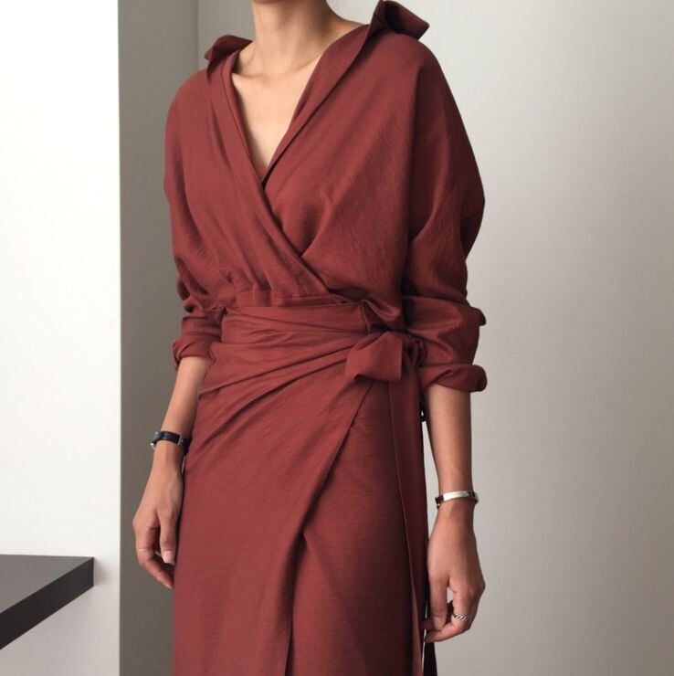 とろみ感のあるカシュクールデザインでレトロな色合いで大人可愛い一枚◎