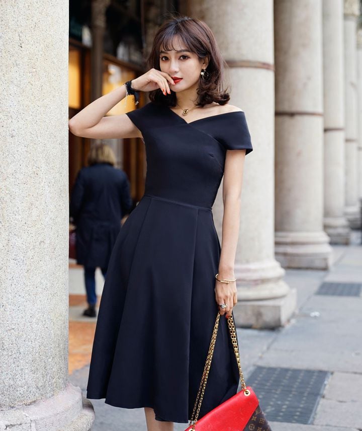 ディナーやお呼ばれなどのシーンにぴったりなオフショルダーワンピース♪