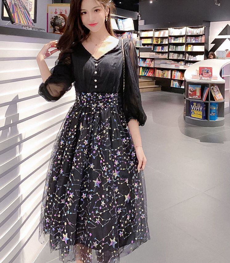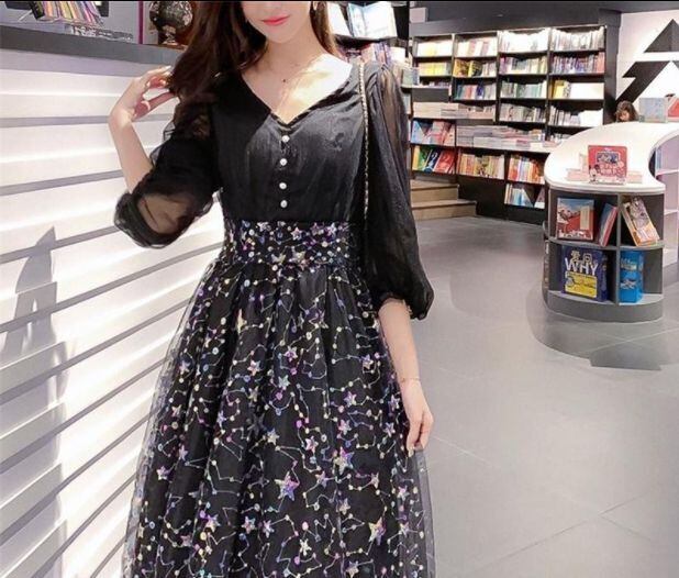 ドッキングワンピース ワンピース 5845 フレアワンピース 袖あり 長袖 Vネック 切り替えデザイン ドッキング チュール 切り替えデザイン ドッキング 透け感 シースルー かわいい 大人可愛い シンプル カジュアル 大人 おしゃれ お洒落 大人可愛い 大人女子 こなれ感 ラブリー キュート ガーリー 個性的 主役級 存在感 無地 柄 春 夏 秋 10代 20代 30代 レディース デート お出かけ 女子会 休日 パーティー イベント 着回し 普段使い 韓国 韓国系 オルチャン 黒 ブラック 送料無料