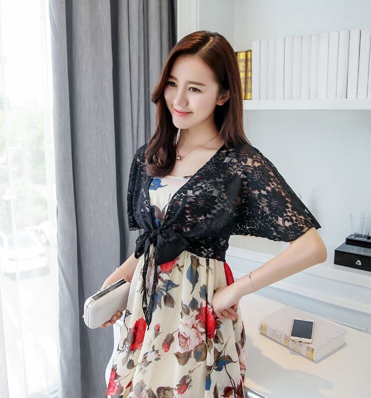 ■おしゃれなレースのボレロ風ショートカーディガンです。ノースリーブやキャミソールワンピに羽織ってエレガントさをアップ!