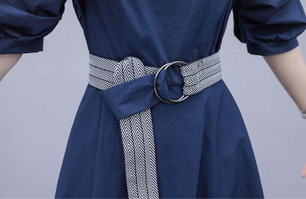 ワンピース ドレス ロング丈 袖あり 5053 半袖 ボリューム袖 襟付き ワードカラー Aライン フリル ベルト ウエストマーク 2点セット 大人可愛い 大人 上品 おしゃれ 大人可愛い 大人女子 エレガント 存在感 無地 春 夏 謝恩会 二次会 2021 20代 30代 レディース デート お出かけ 女子会 休日 パーティー イベント ホテル ガーデン レストラン 着回し 普段使い 韓国系 ファッション モテ 美脚 新作 インスタ映え サイズ L XL 2XL 3XL 4XL ネイビー 送料無料