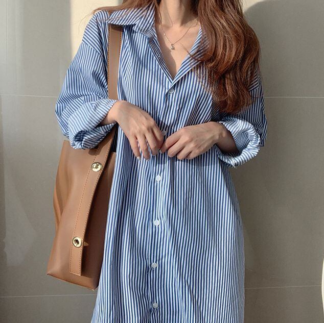 ワンピース シャツワンピース ロング丈 袖あり 5117 長袖 襟付き POLO襟 ストレート ハイウエスト 薄手 かわいい 大人可愛い シンプル カジュアル おしゃれ 大人可愛い 大人女子 ラフ キュート ガーリー ルーズ 柄 ストライプ 春 秋 2020 20代 30代 レディース デート お出かけ 女子会 休日 旅行 着回し 普段使い 韓国系 ファッション モテ 脚長 トレンド サイズ S M L XL 色展開 ブルー パープル ピンク 送料無料