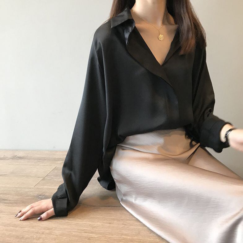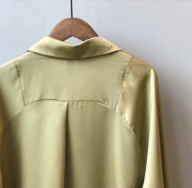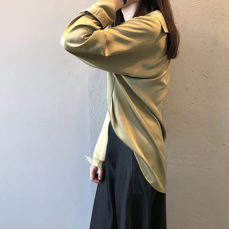 エレガントなスタイルにマッチする、ドレッシーなシャツです。後ろの丈が少し長めの、ルーズ感もあるデザイン。パーティ、イベントシーンで映えるカラーが魅力的です。