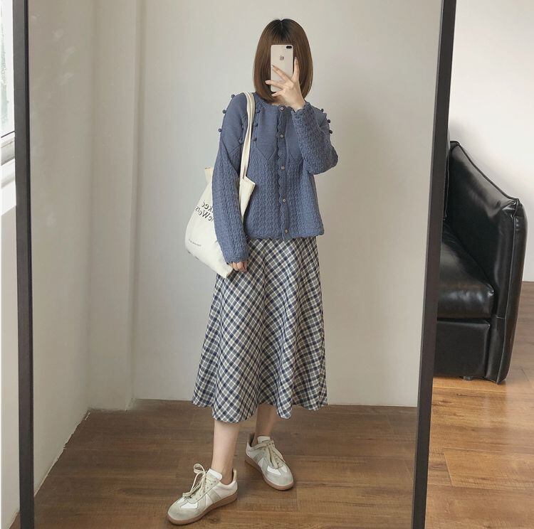 チェック柄フレアスカート スカート 8660 ボトムス フレアスカート ミモレ ミモレ丈 フレア Aライン ハイウエスト PU かわいい 大人可愛い シンプル カジュアル 大人 おしゃれ お洒落 レトロ 大人可愛い 大人女子 こなれ感 ラブリー キュート ガーリー 主役級 存在感 柄 チェック柄 春 秋 10代 20代 30代 レディース マタニティ 学生 通学 デート お出かけ 女子会 休日 着回し 普段使い 韓国 韓国系 サイズ M 色展開 青 ブルー 送料無料
