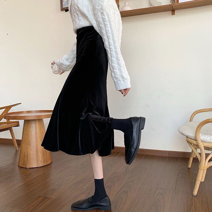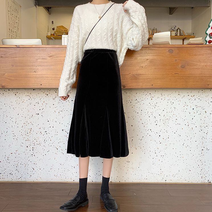 ベロアスカート スカート ボトムス 膝丈 8663 ひざ丈 膝下 切り替えデザイン ハイウエスト かわいい 大人可愛い シンプル カジュアル 大人 おしゃれ お洒落 レトロ 大人可愛い 大人女子 こなれ感 ラブリー キュート ガーリー 主役級 存在感 無地 春 秋 冬 10代 20代 30代 レディース 学生 通学 デート お出かけ 女子会 休日 着回し 普段使い 韓国 韓国系 サイズ S M L 色展開 黒 ブラック 茶色 ブラウン 送料無料