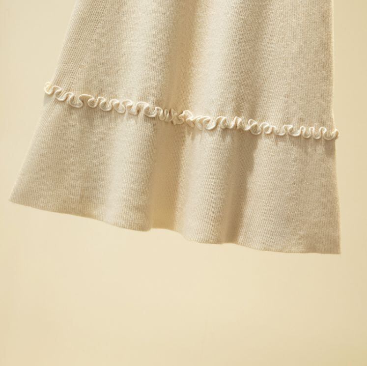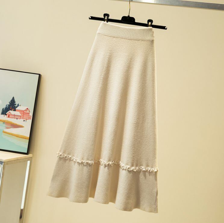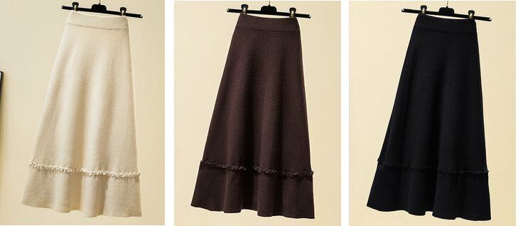フリンジデザインが周りと差が付くAラインシルエットのニットスカート♪