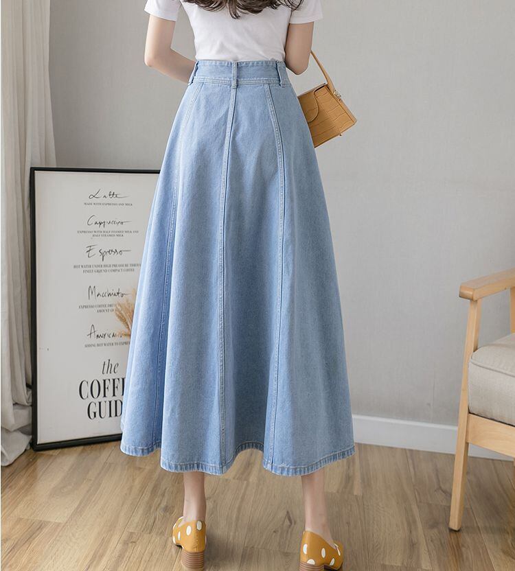 デニムフレアスカート スカート ボトムス 8807 フレアスカート ミモレ ミモレ丈 ロング ロング丈 フレア Aライン デニム かわいい 大人可愛い シンプル カジュアル 大人 おしゃれ お洒落 大人可愛い 大人女子 こなれ感 ラブリー キュート ガーリー 主役級 存在感 無地 春 夏 秋 10代 20代 30代 レディース 学生 通学 デート お出かけ 女子会 休日 着回し 普段使い 韓国 韓国系 サイズ S M L XL 2XL 色展開 ネイビー ライトブルー 送料無料