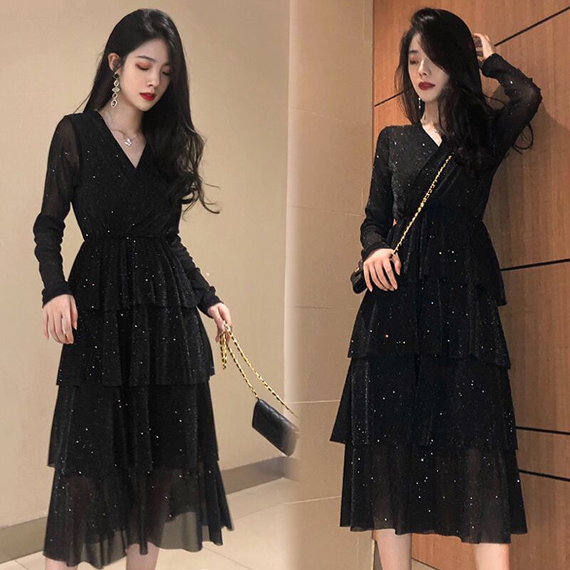ラメティアードワンピース ワンピース 9612 ティアードワンピース ミモレ ミモレ丈 ロング ロング丈 袖あり 長袖 Vネック フレア かわいい 大人可愛い きれいめ シンプル カジュアル 大人 おしゃれ お洒落 かっこいい 大人可愛い 大人女子 こなれ感 ラフ ラブリー キュート ガーリー 主役級 存在感 無地 春 秋 10代 20代 30代 レディース 学生 通学 デート お出かけ 女子会 休日 着回し 普段使い 重ね着 サイズ S M L XL 色展開 黒 ブラック 送料無料