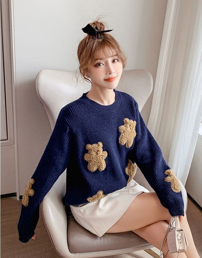 クマニット トップス セーター 袖あり 9625 長袖 ラウンドネック かわいい 大人可愛い シンプル カジュアル 大人 おしゃれ お洒落 大人可愛い ラブリー キュート ガーリー 主役級 存在感 無地 秋 冬 10代 20代 30代 レディース 学生 通学 デート お出かけ 女子会 休日 着回し 普段使い 重ね着 色展開 白 ホワイト 青 ブルー 紫 パープル 送料無料