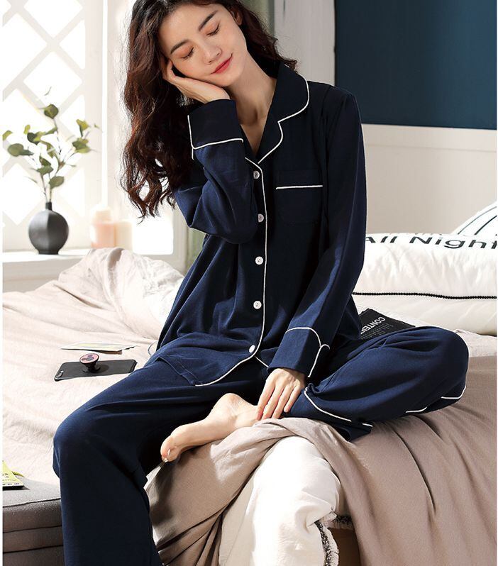 シンプルなデザインの上下セットの襟付きパジャマ◎