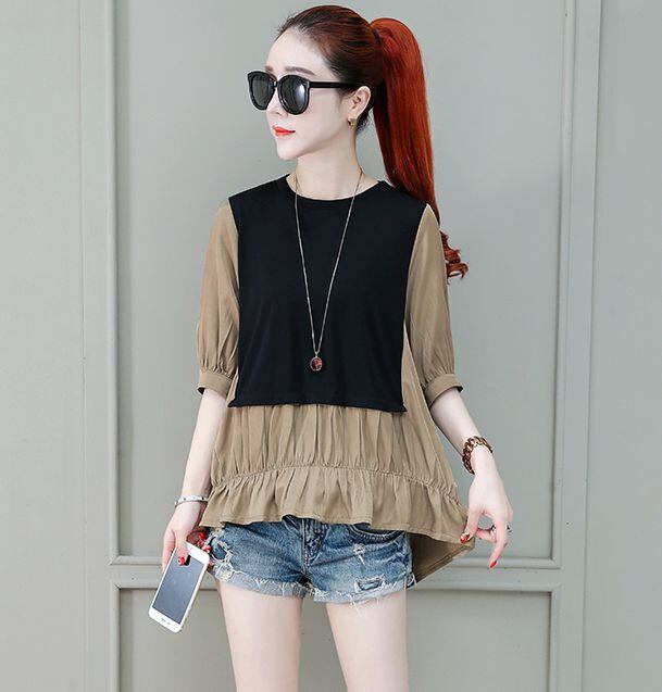 ドッキングブラウス トップス ブラウス 30015 袖あり 7分袖 七分袖 ラウンドネック ドッキング ドッキング かわいい 大人可愛い きれいめ シンプル カジュアル 上品 おしゃれ お洒落 大人可愛い 大人女子 ラブリー キュート ガーリー 個性的 主役級 存在感 無地 春 夏 秋 10代 20代 30代 レディース 学生 通学 デート お出かけ 女子会 休日 着回し 普段使い 重ね着 サイズ M L XL 2XL 色展開 緑 グリーン 茶色 ブラウン 送料無料