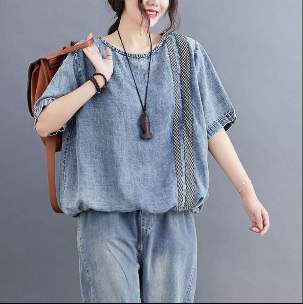 ゆったりのデニムtシャツ、おしゃれでエレガントなブラウス♪