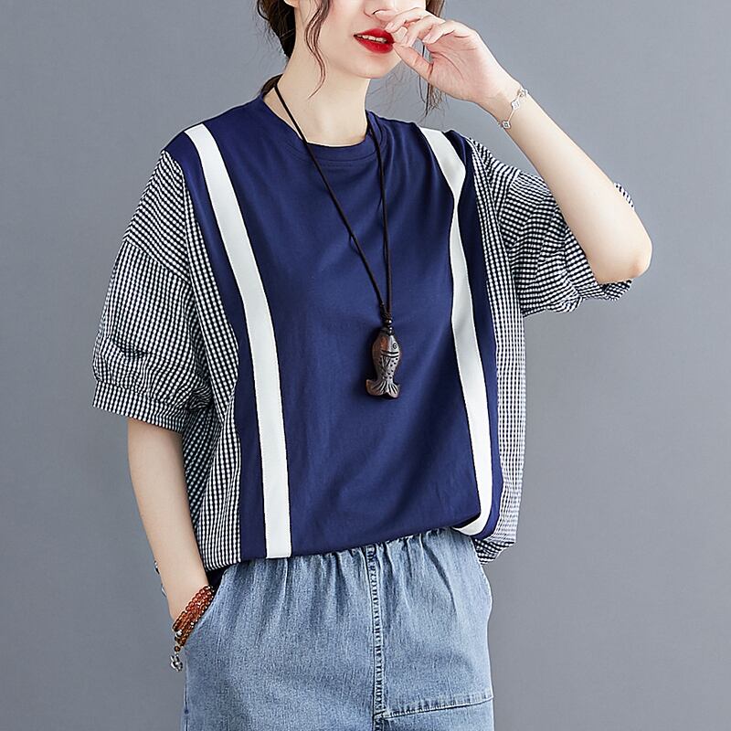 シャツドッキングプルオーバー トップス 30021 プルオーバー 袖あり 半袖 ラウンドネック ドッキング ドッキング 綿 かわいい 大人可愛い シンプル カジュアル 上品 おしゃれ お洒落 大人可愛い 大人女子 ラブリー キュート ガーリー 個性的 主役級 存在感 柄 チェック柄 春 夏 10代 20代 30代 レディース 学生 通学 デート お出かけ 女子会 休日 着回し 普段使い 重ね着 サイズ L XL 色展開 青 ブルー 送料無料