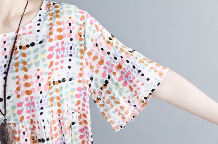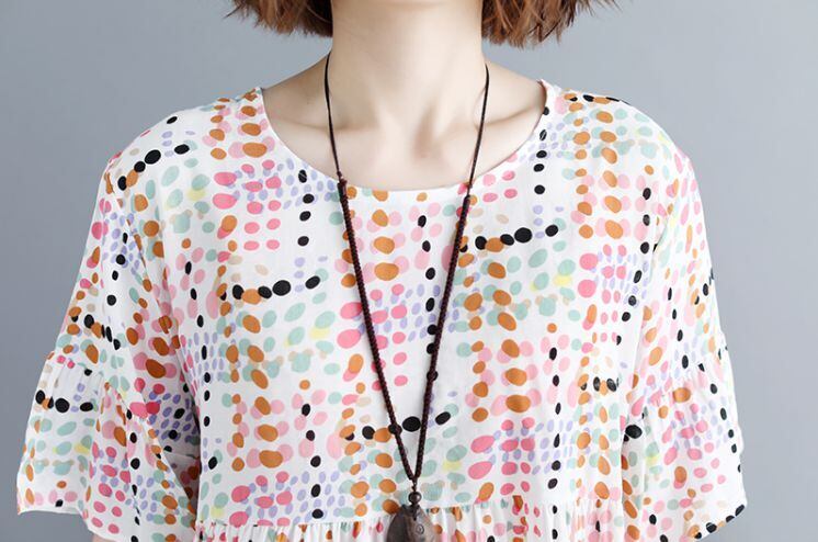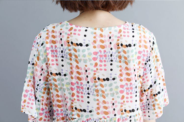 ドット柄半袖ブラウス トップス ブラウス 30033 袖あり 半袖 フレアスリーブ ラウンドネック 切り替えデザイン 切り替えデザイン 綿 麻 リネン かわいい 大人可愛い シンプル カジュアル おしゃれ お洒落 レトロ 大人可愛い 大人女子 ラブリー キュート ガーリー 主役級 存在感 柄 ドット柄 水玉 春 夏 10代 20代 30代 レディース 学生 通学 デート お出かけ 女子会 休日 着回し 普段使い 重ね着 送料無料