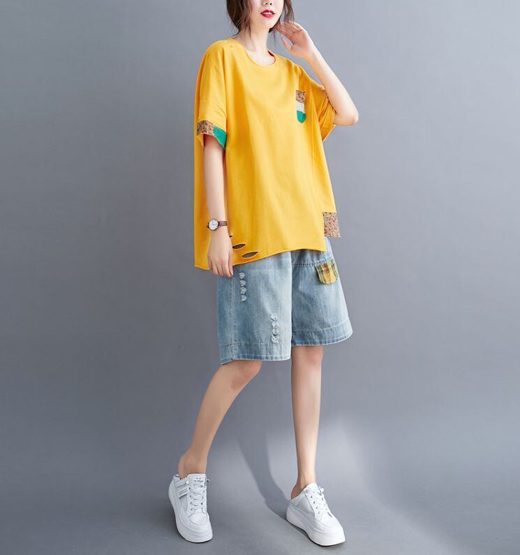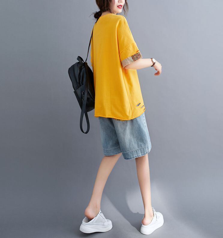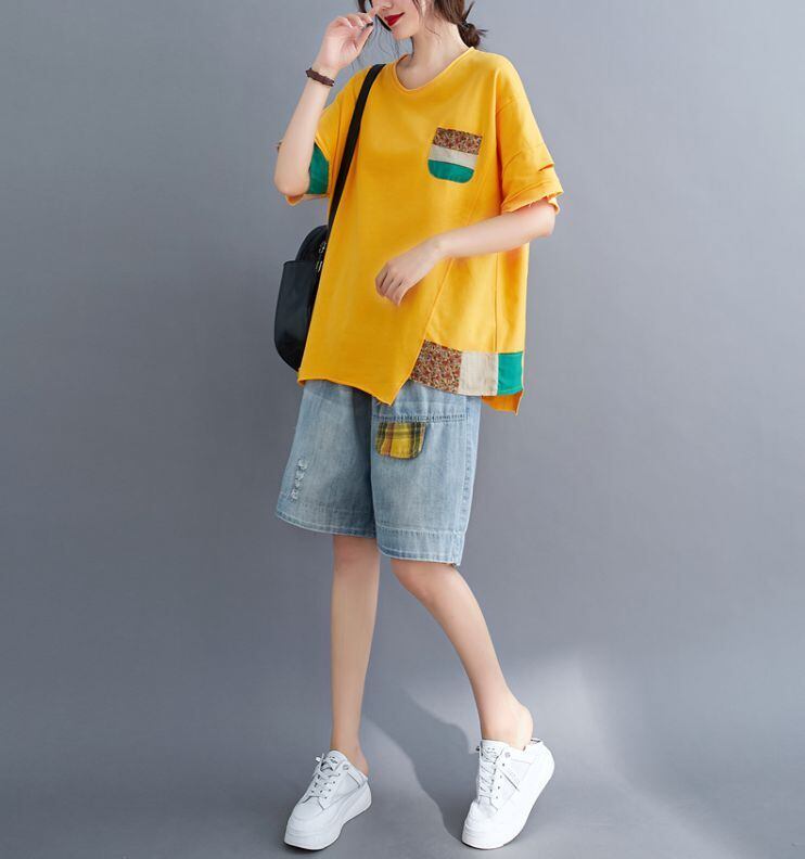 パッチワーク風Tシャツ トップス Tシャツ 袖あり 30082 半袖 ラウンドネック 綿 かわいい 大人可愛い きれいめ シンプル カジュアル おしゃれ お洒落 大人可愛い 大人女子 こなれ感 ラフ キュート ガーリー 個性的 主役級 存在感 無地 柄 春 夏 10代 20代 30代 レディース 学生 通学 デート お出かけ 女子会 休日 着回し 普段使い 重ね着 サイズ L XL 色展開 白 ホワイト 黄色 イエロー 送料無料