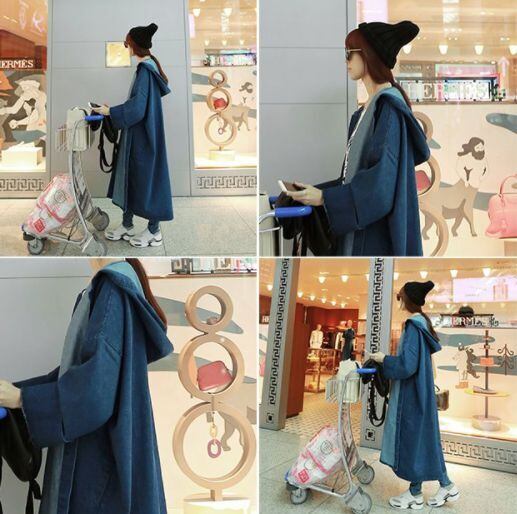 アウター ジャケット 膝上 長袖 7767 フード付き ポケット ブルーデニム コットン きれいめ シンプル カジュアル 無地 春 秋 10代 20代 30代 レディース 女性用 デート お出かけ アウトドア 普段使い 防寒 S M L XL ブルー 送料無料