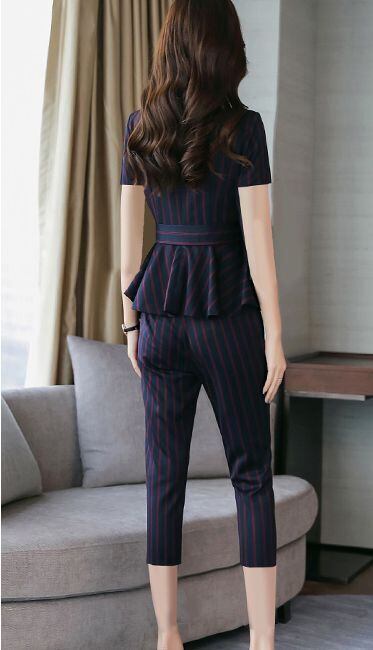 トップス パンツ スーツ スキニーパンツ 膝下 袖あり 5949 半袖 7分袖 長袖 ラウンドネック 襟付き スリム ストレート ウエストリボン ハイウエスト きれいめ シンプル 大人 上品 おしゃれ かっこいい 大人女子 こなれ感 クール モダン フォーマル 柄 ストライプ 春 秋 二次会 披露宴 2021 20代 30代 レディース OL 通勤 パーティー イベント ホテル レストラン 着回し 韓国系 ファッション モテ 美脚 脚長 定番 サイズ S M L XL 2XL ネイビー 送料無料