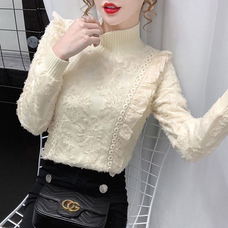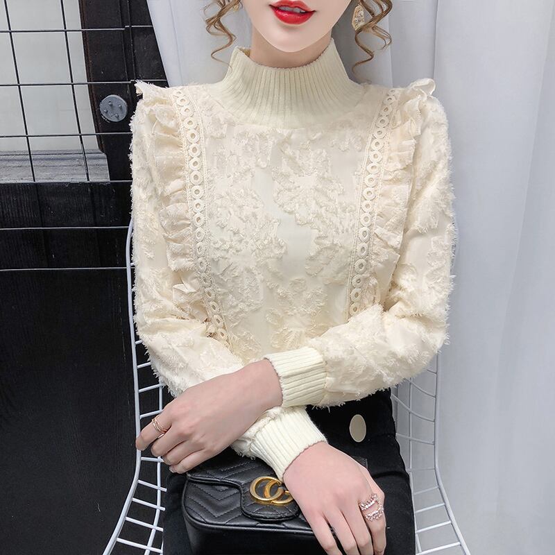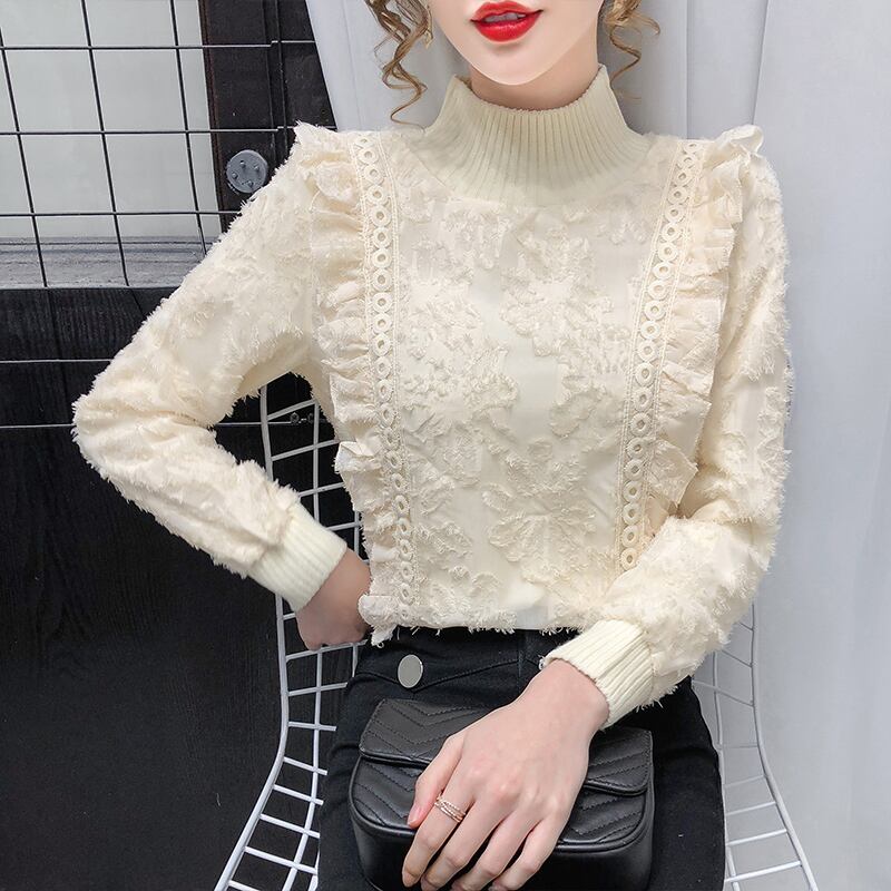 レースシャツ トップス 袖あり 20638 長袖 ハイネック スリム レース 刺繍 きれいめ シンプル 秋 冬 レディース 通勤 お出かけ 普段使い S M L XL 2XL 通常モデル カシミアモデル 送料無料
