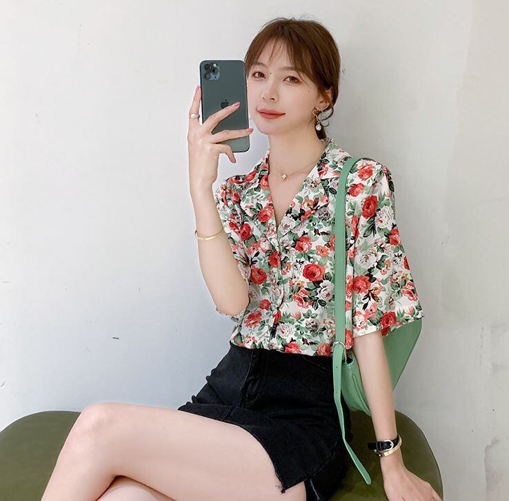 花柄シャツ 袖あり 半袖 大人可愛い 大人 24291 おしゃれ お洒落 大人可愛い 大人女子 こなれ感 秋 冬 10代 20代 30代 OL 通勤 学生 通学 デート 韓国 韓国系 トレンド 流行 インスタ映え 送料無料