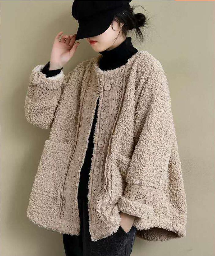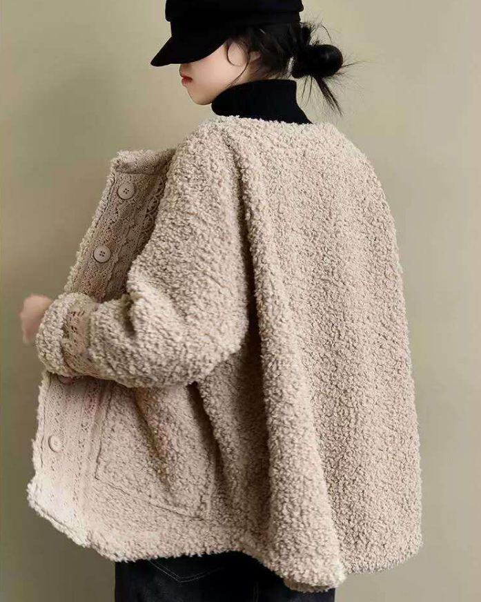 ボアジャケット アウター ブルゾン ジャケット 30125 袖あり 長袖 ラウンドネック レース もこもこ モコモコ ふわふわ ボア かわいい 大人可愛い シンプル カジュアル おしゃれ お洒落 かっこいい 大人可愛い 大人女子 こなれ感 ラフ ラブリー キュート ガーリー 個性的 主役級 存在感 無地 秋 冬 10代 20代 30代 レディース 学生 通学 デート お出かけ 女子会 休日 着回し 普段使い 重ね着 サイズ L XL 色展開 茶色 ブラウン カーキ 送料無料