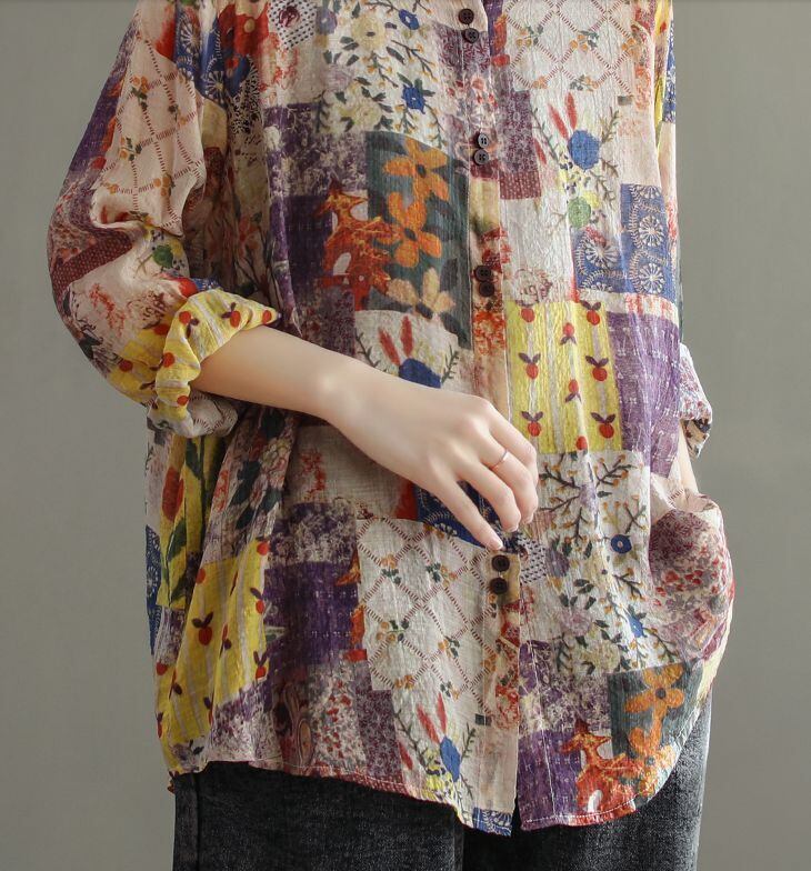 パッチワーク風シャツ トップス シャツ 30132 ブラウス 袖あり 長袖 襟付き 前開き 透け感 かわいい 大人可愛い シンプル カジュアル おしゃれ お洒落 レトロ 大人可愛い 大人女子 こなれ感 ラブリー キュート ガーリー 個性的 クール 主役級 存在感 柄 花柄 春 夏 10代 20代 30代 レディース 学生 通学 デート お出かけ 女子会 休日 着回し 普段使い 重ね着 送料無料