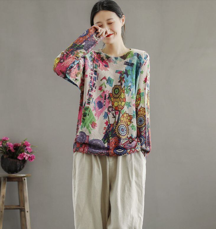 柄ニット トップス セーター 袖あり 30136 長袖 ラウンドネック かわいい 大人可愛い きれいめ シンプル カジュアル おしゃれ お洒落 レトロ 大人可愛い 大人女子 こなれ感 ラブリー キュート ガーリー 個性的 主役級 存在感 柄 花柄 秋 冬 10代 20代 30代 レディース 学生 通学 デート お出かけ 女子会 休日 着回し 普段使い 重ね着 送料無料