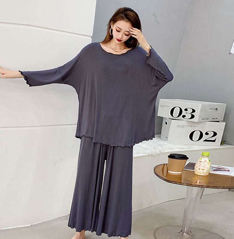 落ち感のある生地をたっぷり使った、ゆったりめのパターンで、トレンド感を保ちつつ、しっかり楽ちんなおうち時間を楽しめます。