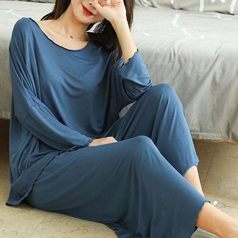 ルームウェア パジャマ 部屋着 寝巻き 30150 ナイトウェア ロング ロング丈 袖あり 長袖 ラウンドネック ウエストゴム ポリエステル 上下セット 2点セット ツーピース かわいい 大人可愛い シンプル カジュアル おしゃれ お洒落 大人可愛い 大人女子 こなれ感 ラブリー キュート ガーリー とろみ感 無地 春 秋 10代 20代 30代 レディース お泊まり 休日 重ね着 韓国 韓国系 サイズ 2XL 3XL ゆったり 色展開 グレー ネイビー ブルー 送料無料