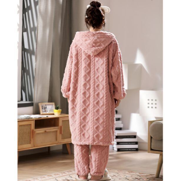 ニット風ルームウェア ルームウェア パジャマ 30192 部屋着 寝巻き ナイトウェア ロング ロング丈 袖あり 長袖 Vネック 襟付き もこもこ モコモコ ふわふわ 前開き ウエストゴム ポリエステル 上下セット 2点セット ツーピース かわいい 大人可愛い きれいめ シンプル カジュアル おしゃれ お洒落 かっこいい 大人可愛い 大人女子 こなれ感 ラブリー キュート ガーリー 主役級 無地 柄 秋 冬 10代 20代 30代 レディース お泊まり 韓国 韓国系 サイズ S M L XL 送料無料