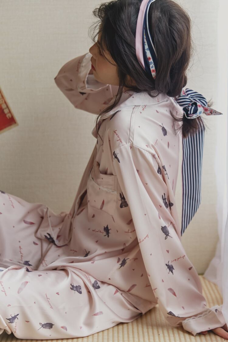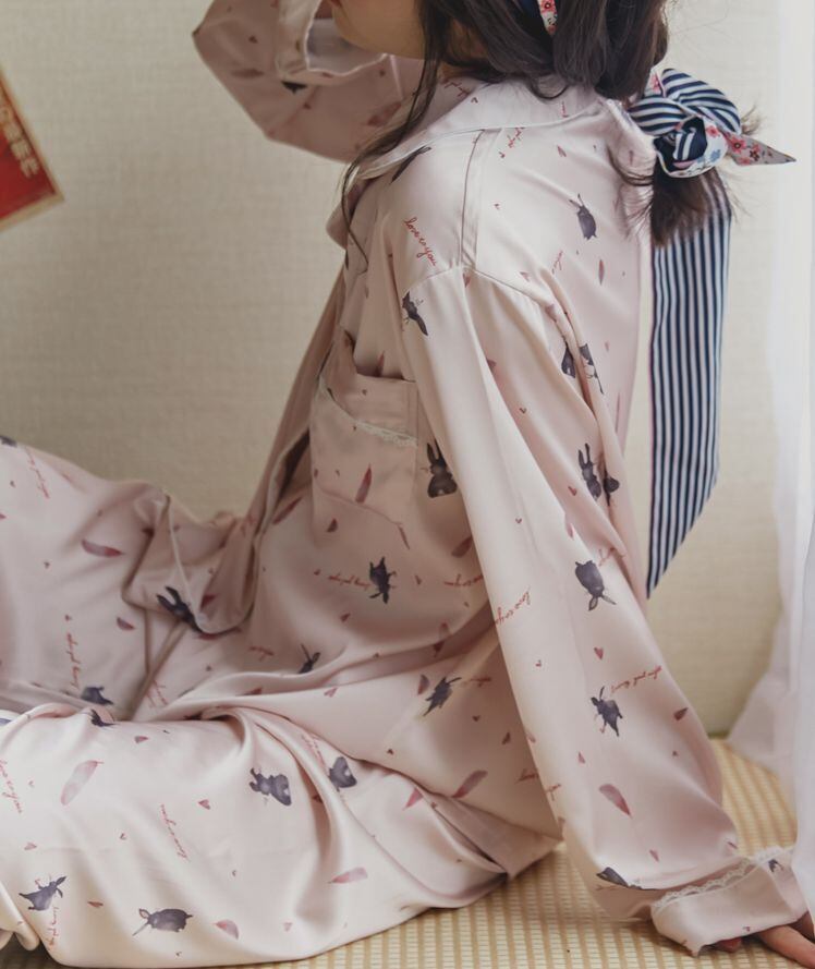 ウサギ柄長袖パジャマ ルームウェア パジャマ 30223 部屋着 寝巻き ナイトウェア ロング ロング丈 袖あり 長袖 Vネック 襟付き 前開き ウエストゴム ポリエステル 上下セット 2点セット ツーピース かわいい 大人可愛い きれいめ シンプル カジュアル おしゃれ お洒落 大人可愛い 大人女子 ラブリー キュート ガーリー 主役級 柄 アニマル柄 春 秋 10代 20代 30代 レディース お泊まり 休日 重ね着 楽ちん サイズ M L XL 色展開 ピンク 送料無料