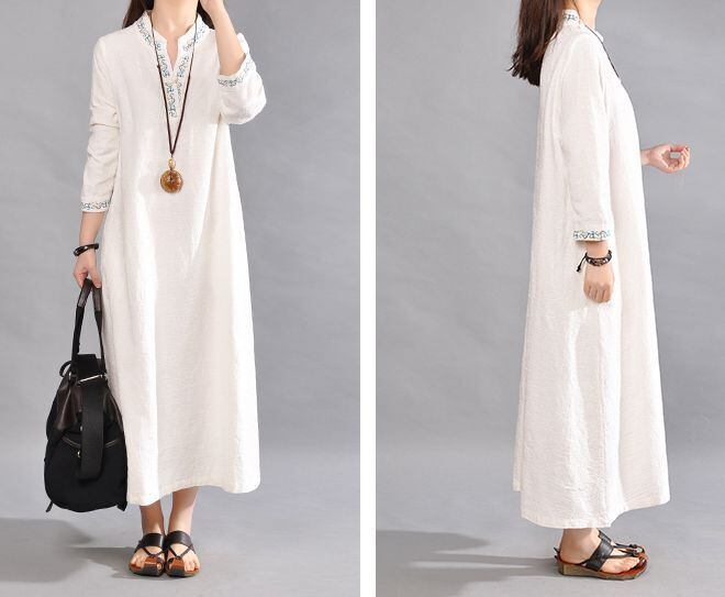 刺繡スキッパーワンピース ワンピース 30270 シャツワンピース ロング ロング丈 袖あり 長袖 Vネック 刺繍 綿 麻 リネン かわいい 大人可愛い シンプル カジュアル おしゃれ お洒落 レトロ エキゾチック 大人可愛い 大人女子 ラブリー キュート ガーリー 個性的 主役級 存在感 無地 春 秋 10代 20代 30代 レディース 学生 通学 デート お出かけ 女子会 休日 着回し 普段使い 重ね着 サイズ M L XL 2XL 色展開 白 ホワイト 黒 ブラック 赤 レッド 送料無料