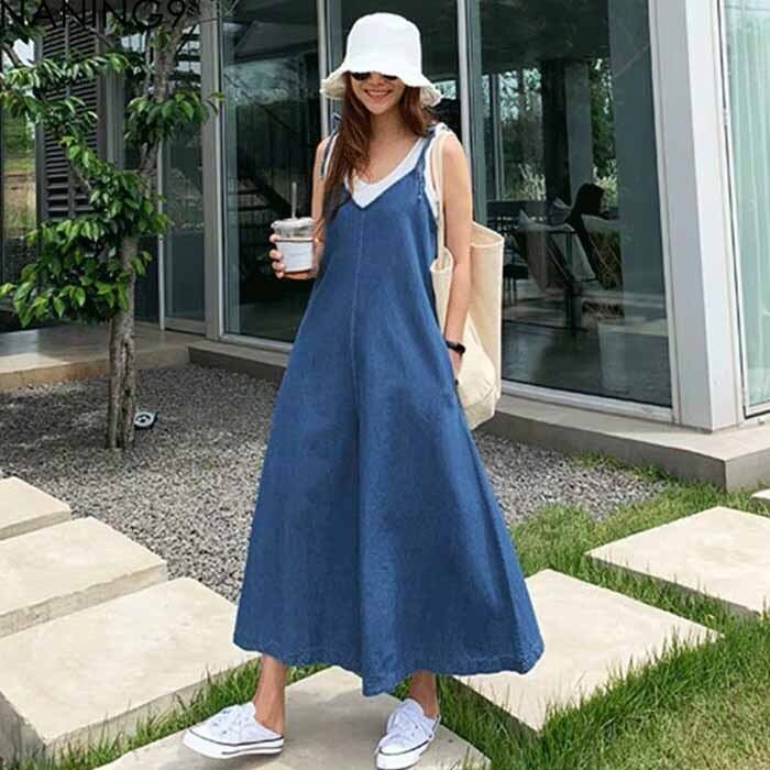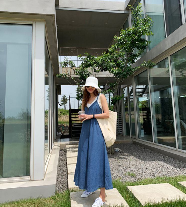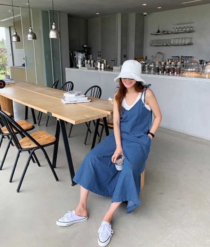デニム生地のカジュアルジャンプスーツです。ちょっとしたお出かけや公園に行くときにぴったり。