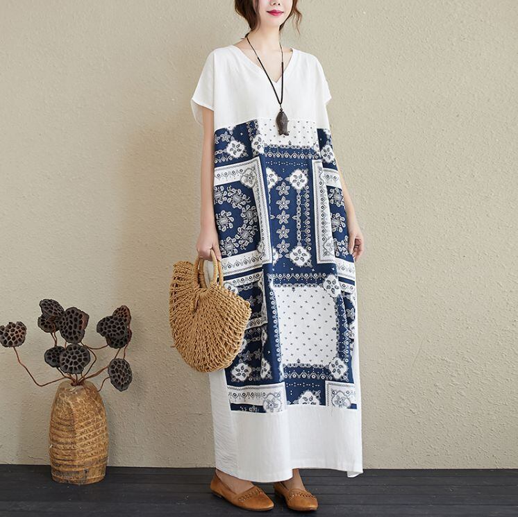 バンダナ柄マキシ丈ワンピース 30280 ワンピース ロング ロング丈 マキシ マキシ丈 袖あり 半袖 Vネック 綿 麻 リネン かわいい 大人可愛い きれいめ シンプル カジュアル おしゃれ お洒落 レトロ 大人可愛い 大人女子 ラブリー キュート ガーリー 個性的 主役級 存在感 無地 柄 春 夏 10代 20代 30代 レディース デート お出かけ 女子会 休日 着回し 普段使い 重ね着 色展開 白 ホワイト 送料無料