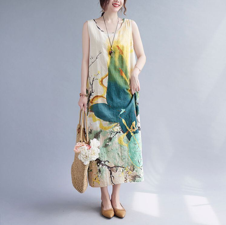 ノースリーブワンピース ワンピース 30289 ワンピドレス ロング ロング丈 袖なし ノースリーブ ラウンドネック フレア Aライン 綿 大人可愛い きれいめ シンプル カジュアル おしゃれ お洒落 レトロ 大人可愛い 大人女子 ラブリー キュート ガーリー 個性的 主役級 存在感 とろみ感 柄 春 夏 10代 20代 30代 レディース デート お出かけ 女子会 休日 着回し 普段使い 重ね着 サイズ 送料無料