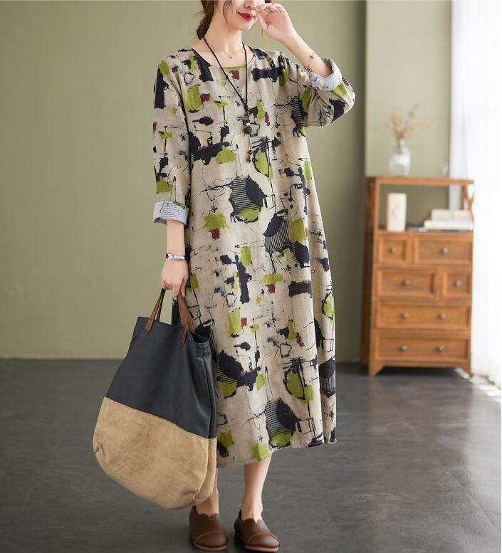 長袖ワンピース ワンピース フレアワンピース 30299 ミモレ ミモレ丈 ロング ロング丈 袖あり 長袖 ラウンドネック 綿 麻 リネン かわいい 大人可愛い きれいめ シンプル カジュアル おしゃれ お洒落 レトロ 大人可愛い 大人女子 ラブリー キュート ガーリー 個性的 主役級 存在感 柄 春 秋 10代 20代 30代 レディース 学生 通学 デート お出かけ 女子会 30299 休日 着回し 普段使い 重ね着 サイズ M L XL 2XL 送料無料