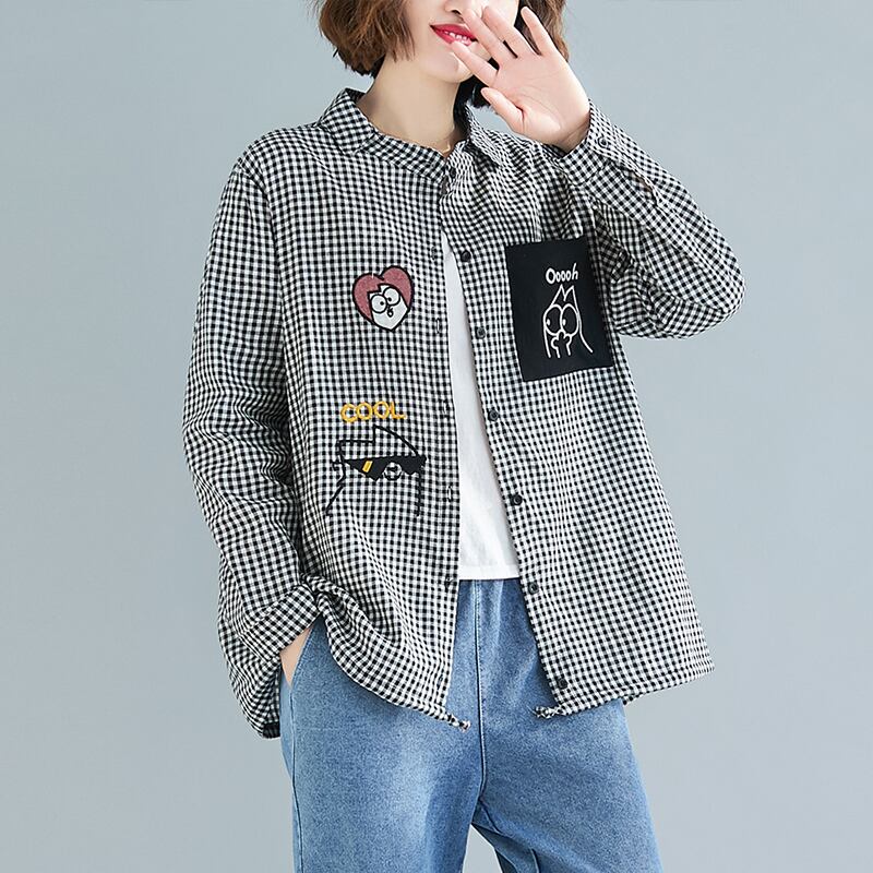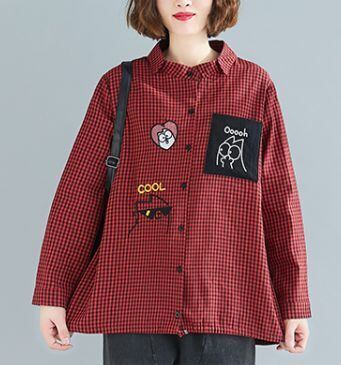 トップス シャツ ミディアム丈 袖あり 30416 長袖 襟付き POLO襟 ストレート ポケット 前開き 綿 ポリエステル 薄手 大人可愛い シンプル カジュアル おしゃれ レトロ こなれ感 ラフ ボーイッシュ ガーリー ルーズ チェック柄 春 秋 2021 10代 20代 レディース デート お出かけ 休日 イベント 旅行 着回し 普段使い オルチャン ファッション 新作 トレンド インスタ映え サイズ M XL 2XL 3XL 色展開 ブラック レッド 送料無料