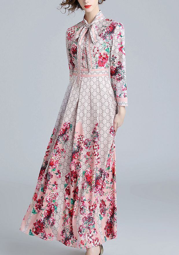 ボウタイ花柄ワンピース ワンピース 30713 フレアワンピース ロング ロング丈 袖あり 長袖 スタンドカラー リボン ウエストマーク ハイウエスト かわいい 大人可愛い きれいめ シンプル カジュアル おしゃれ お洒落 レトロ 大人可愛い 大人女子 ラブリー キュート ガーリー 個性的 主役級 存在感 柄 花柄 春 秋 10代 20代 30代 レディース デート お出かけ 女子会 休日 着回し 普段使い 重ね着 韓国 韓国系 サイズ M L XL 2XL 送料無料