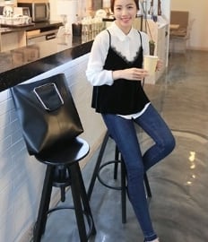 シャツとレイヤードするだけで今季トレンドライクなスタイルに◎