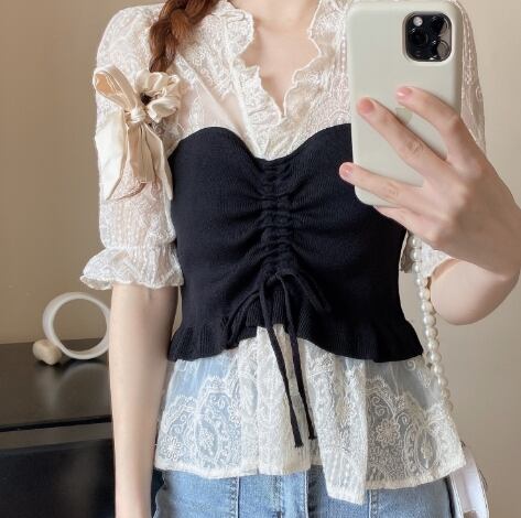 ビスチェを重ね着しているようなデザインのレースブラウス♪