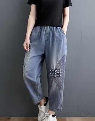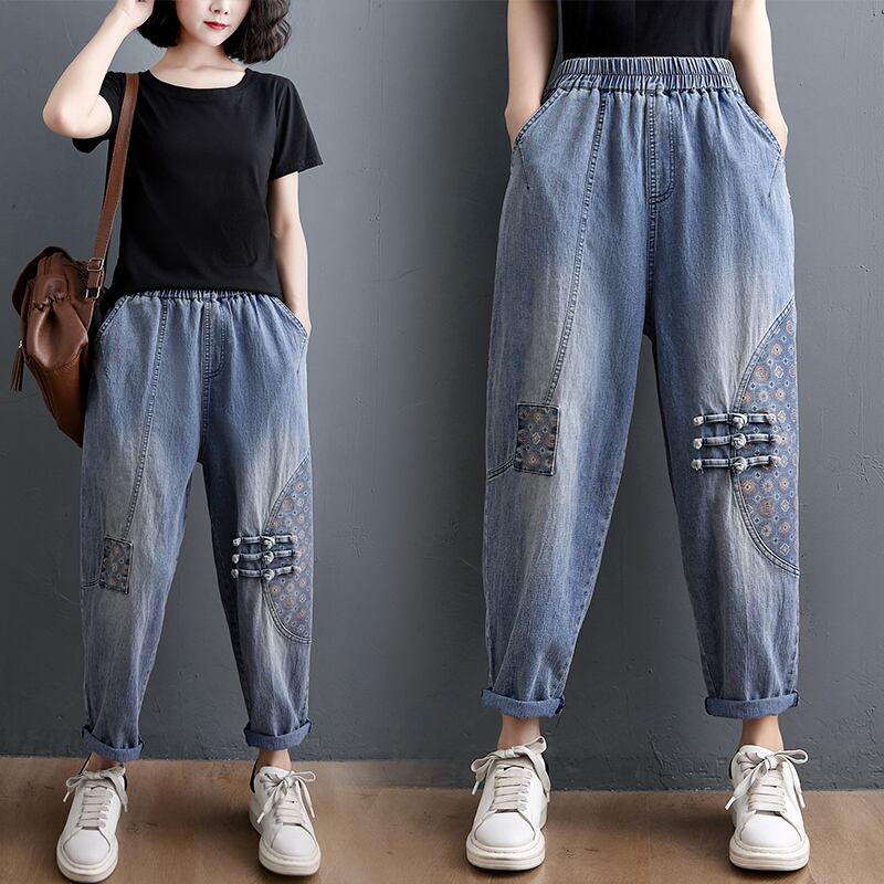 ボトムス パンツ ワイドパンツ アンクル丈 30441 ストレート ハイウエスト ウエストゴム パッチワーク カラーデニム コットンデニム 大人可愛い カジュアル おしゃれ レトロ 大人女子 こなれ感 ラフ ルーズ 個性的 春 秋 2021 20代 30代 レディース デート お出かけ 休日 アウトドア イベント 旅行 着回し 普段使い 韓国系 ファッション 楽ちん 体系カバー 新作 インスタ映え サイズ M L XL 2XL ゆったり 色展開 ブラック ブルー 送料無料