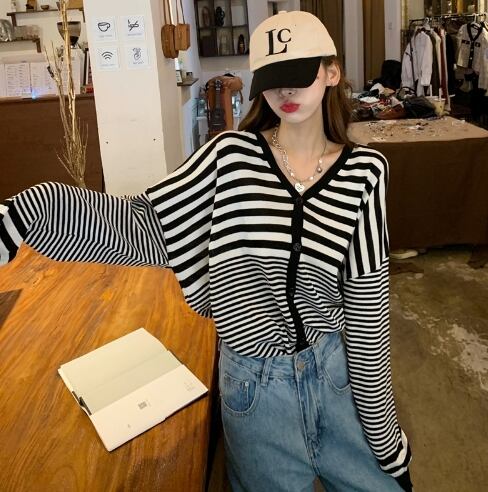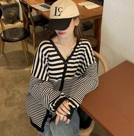 ボーダーカーディガン トップス カーディガン 30748 袖あり 長袖 Vネック 前開き ポリエステル かわいい 大人可愛い シンプル カジュアル おしゃれ お洒落 レトロ 大人可愛い 大人女子 こなれ感 ラフ ラブリー キュート ガーリー 個性的 主役級 存在感 柄 ボーダー 春 秋 10代 20代 30代 レディース 学生 通学 デート お出かけ 女子会 休日 着回し 普段使い 重ね着 サイズ L XL 2XL 3XL 4XL 大きいサイズ 色展開 黒 ブラック 送料無料