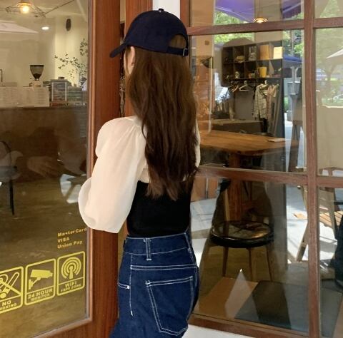 身頃のリブがすっきりと上品な印象を与えてくれ、ふんわりとしたお袖とのメリハリがGOOD。