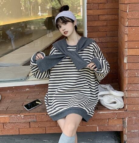 オーバーサイズボーダートップス 30757 トップス プルオーバー トレーナー 袖あり 長袖 ラウンドネック 綿 ポリエステル かわいい 大人可愛い シンプル カジュアル おしゃれ お洒落 レトロ 大人可愛い 大人女子 こなれ感 ラフ ボーイッシュ ラブリー キュート ガーリー 個性的 主役級 存在感 柄 ボーダー 春 秋 10代 20代 30代 レディース 学生 通学 デート お出かけ 女子会 休日 着回し 普段使い 重ね着 サイズ XL 2XL 3XL 色展開 黒 ブラック 灰色 グレー 送料無料