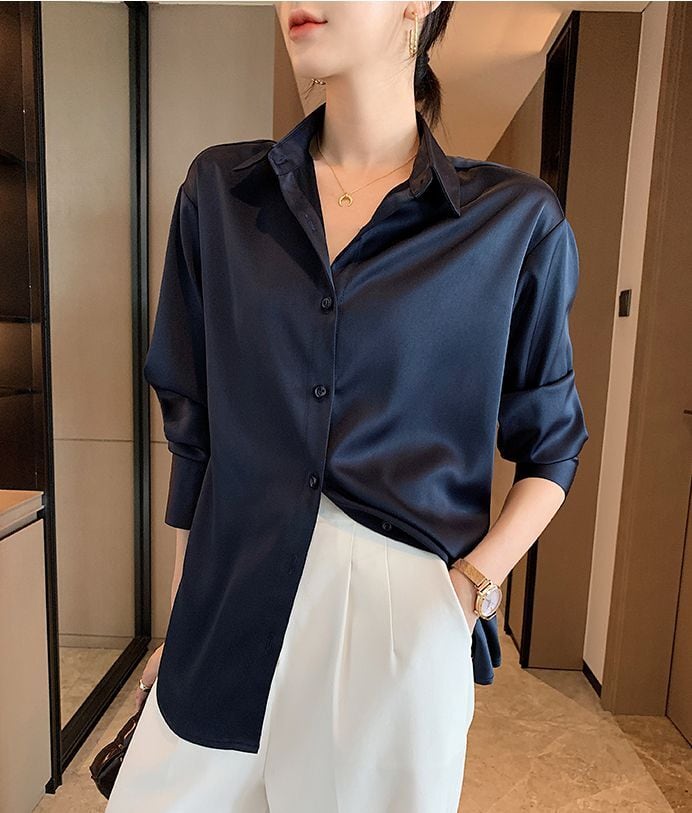 鮮やかな光沢がラグジュアリー感を醸し出すゆったりシルエットのシャツ。キレイ目パンツはもちろん、ジーンズにも合う着こなしができます。